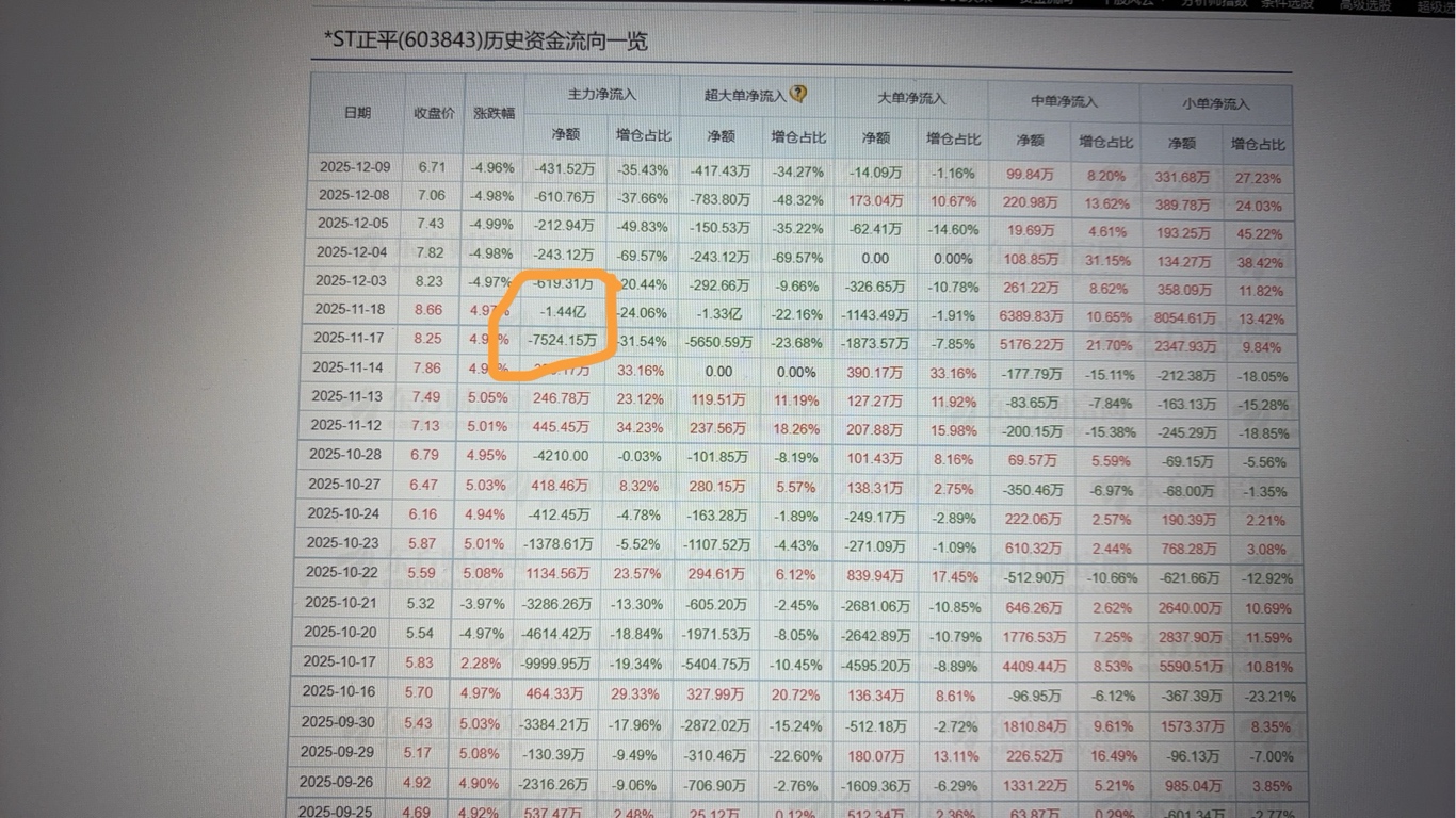 $*ST正平(SH603843)$ 正平关小黑屋前面 2 天主力出了 2 个亿,散户接了盘。这几天砸盘压价,这批好不容易买到货的小散又天天挂跌停板逃,因为没有利润可以扛只想着割肉。到时主力再从你们手里低价买回来