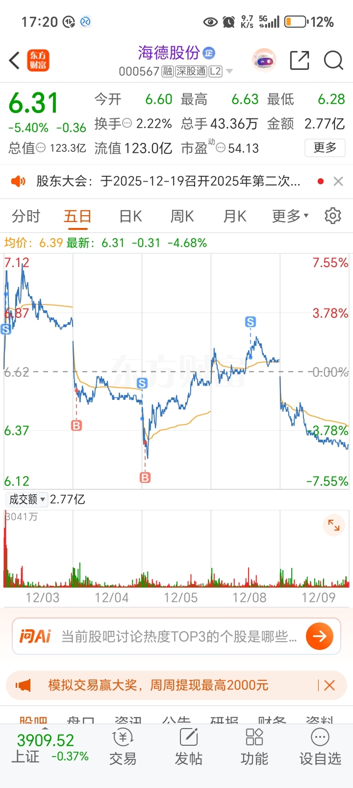 $*ST正平(SH603843)$ $海德股份(SZ000567)$ 这个主力真的是狠啊!主板的立案股都没有你沙的这么狠,好歹一两个板就开了。哪怕真的是要压价或者要退4的话,也总得让人进出自由吧。哪怕是一路阴跌,让想走的就走,让不想走的做做T也行啊。
