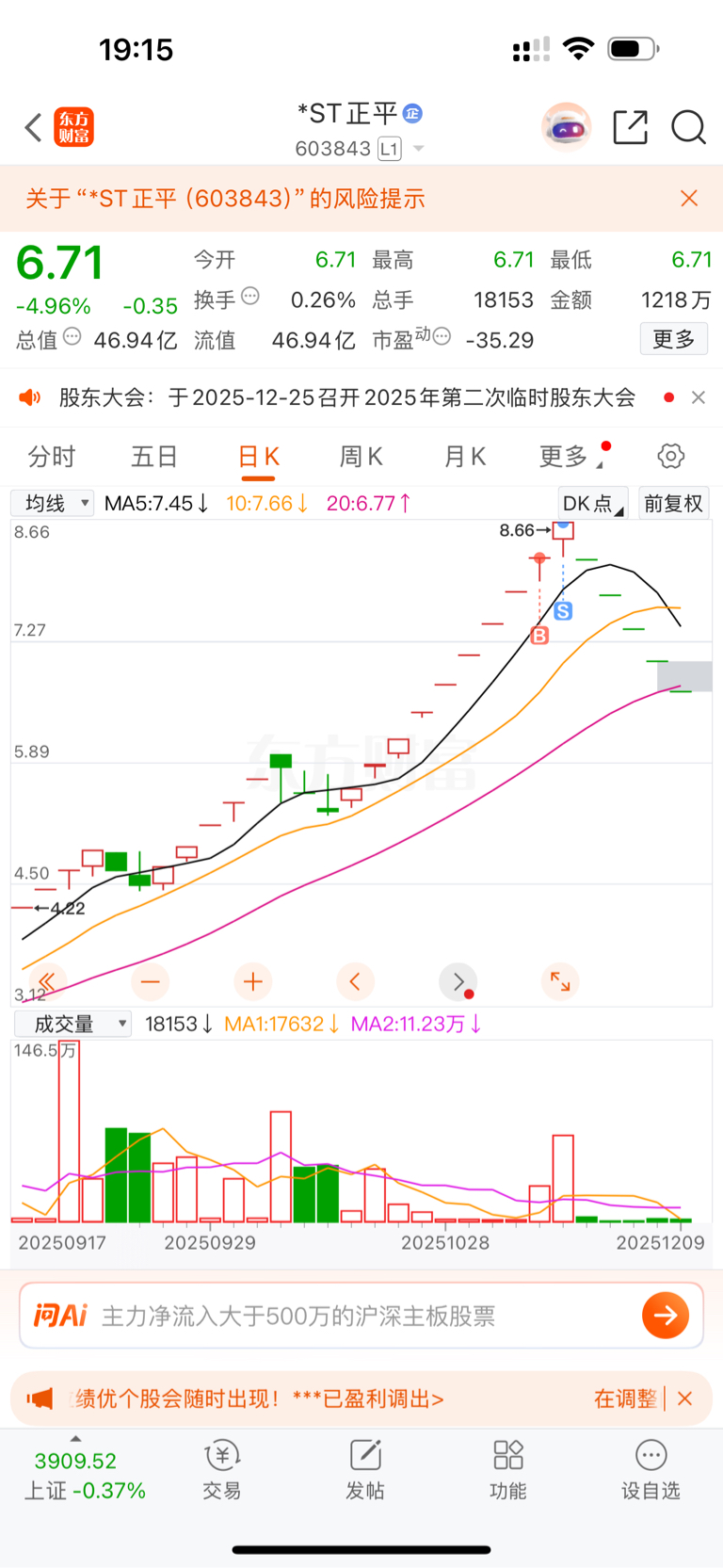 $*ST正平(SH603843)$ 吃了一口,瑟瑟发抖