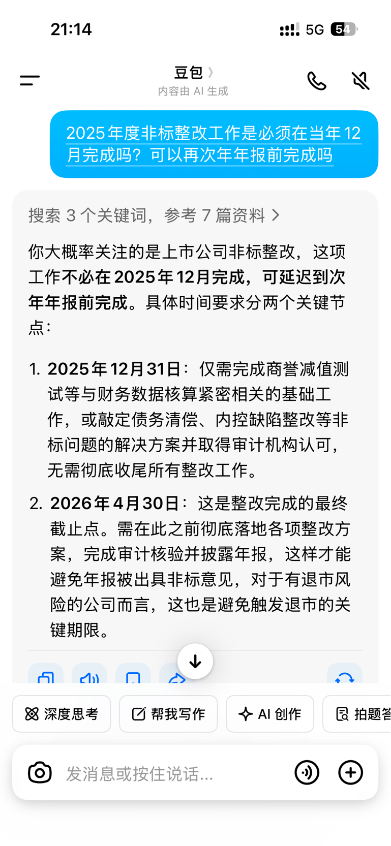 非标的整改工作不是必须12月整改完成,只要在2026年年报前完成整改就可以了!!