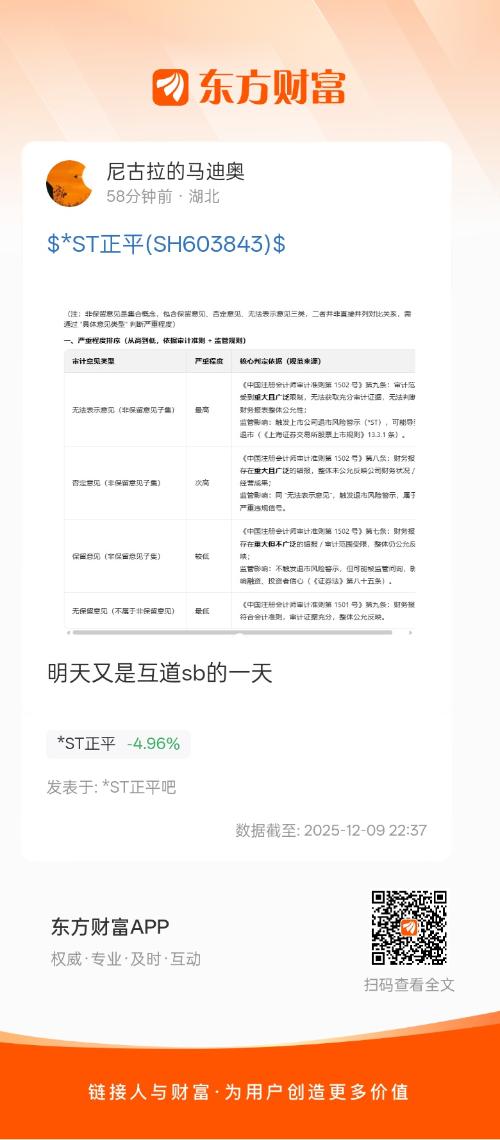 温馨提示: 1.根据《证券法》规定,禁止编造、传播虚假信息或者误导性信息,扰乱证券市场;2.用户在本社区发表的所有资料、言论等仅代表个人观点,与本网站立场无关,不对您构成任何投资建议。用户应基于自己的独立判断,自行决定证券投资并承担相应风险。《东方财富社区管理规定》