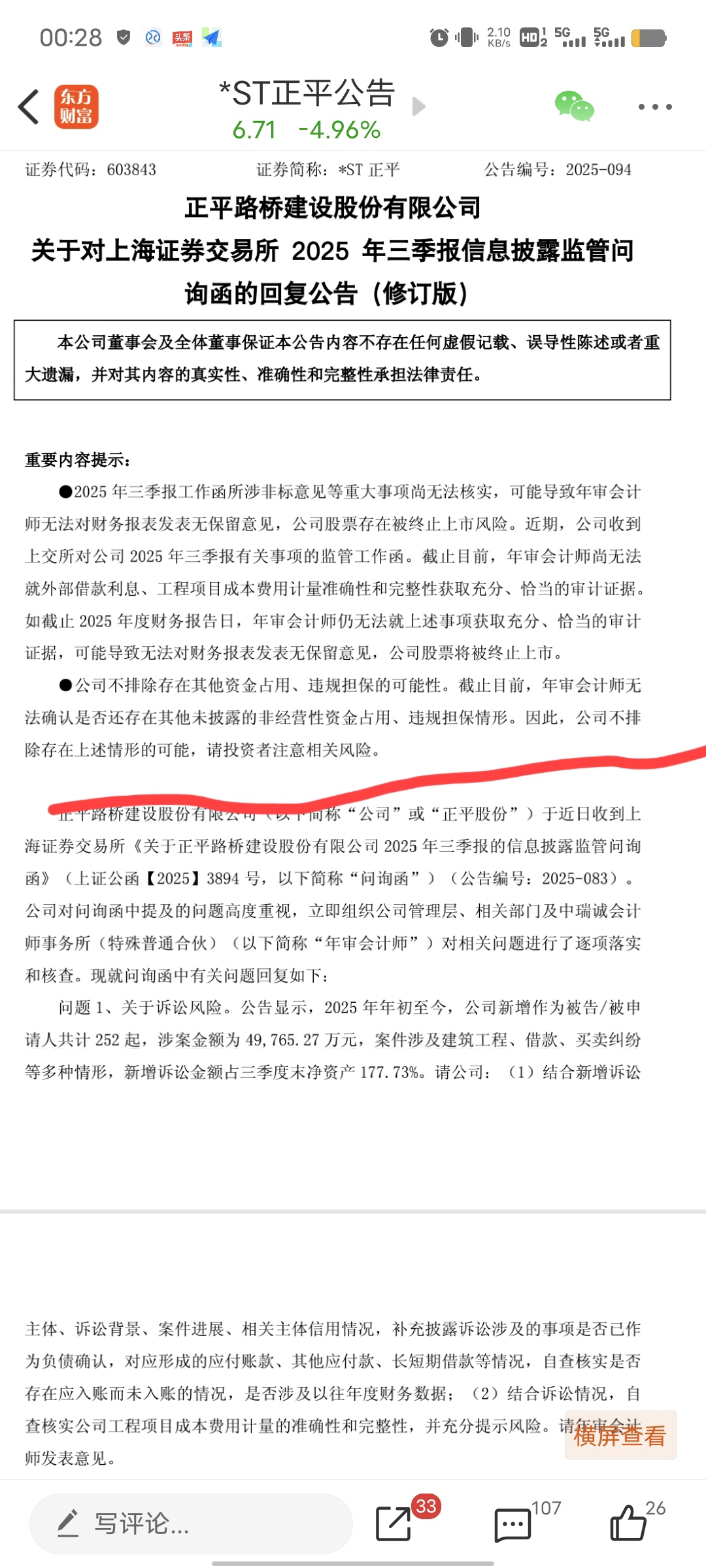 $*ST正平(SH603843)$ 良心坏了吧。会记师就差明说了。还在唱利好。会记师不敢保证。啥意思还不明白吗。