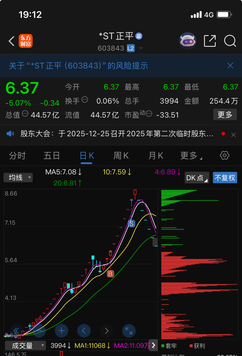 $*ST正平(SH603843)$ 开板就跑,落袋为安,少吃一个涨停板,避免多个跌停板,不跑的人还是太贪心了,活该