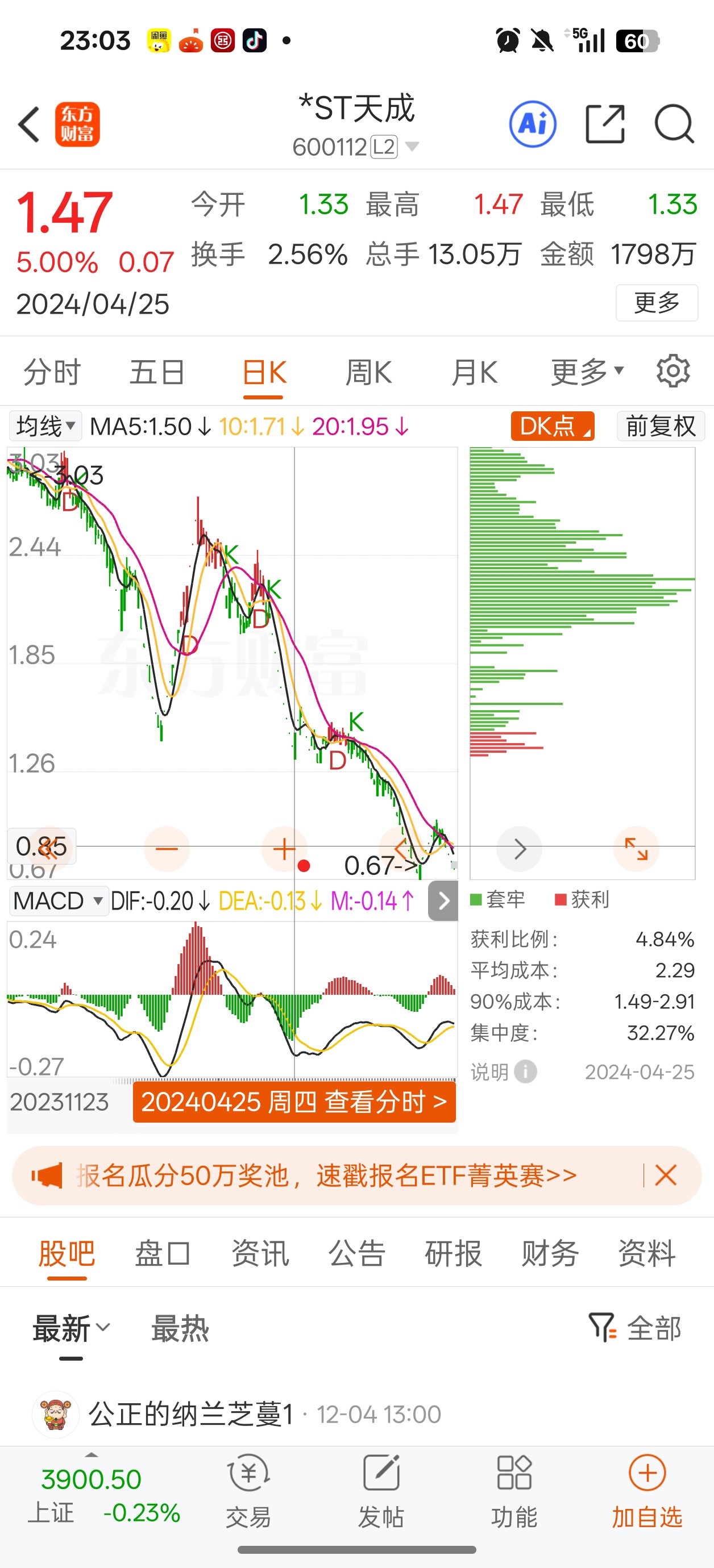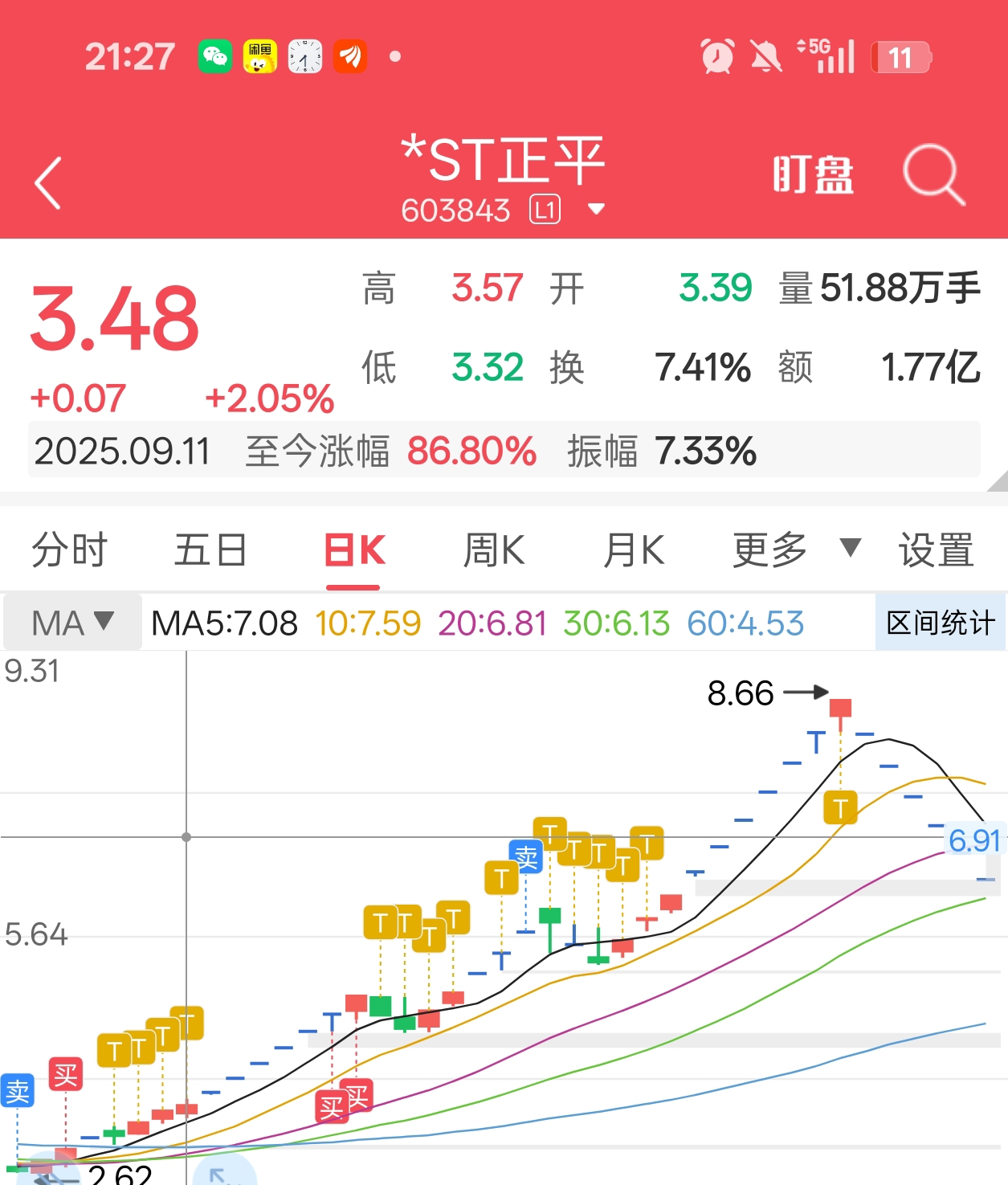 $*ST正平(SH603843)$ 一个股吧几天要拉黑了大几十个人,1月5号小寒之前绝不可能超过今天收盘价,sha鸟和不懂的人太多了,还有一堆留底仓看底牌,一堆几千、一两万买的玩的!看我的买点就3个——后面一路T减,我觉得操作没啥错,走势太奇葩,1.8成本都让我有点心烦意乱!