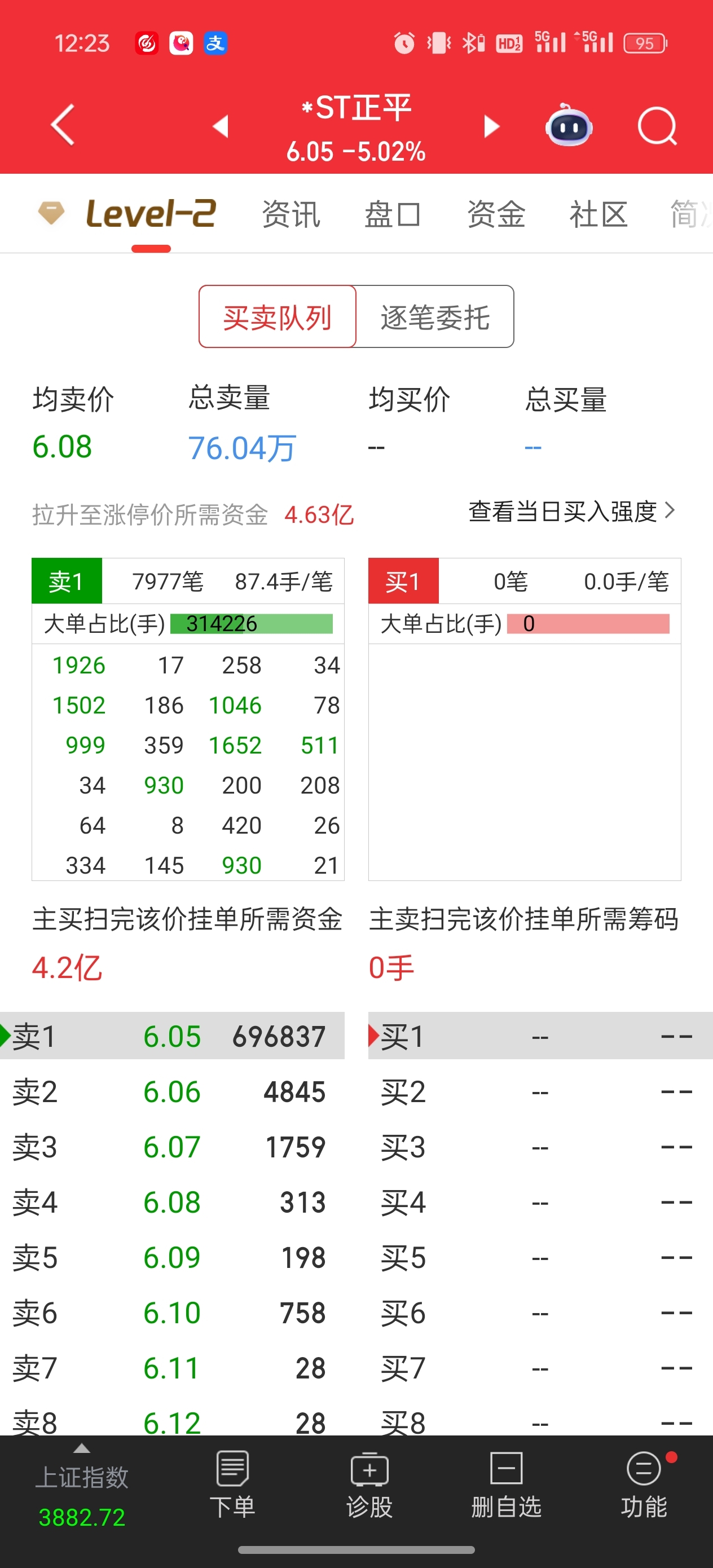 $*ST正平(SH603843)$ 前面的大单都不一定卖的出。