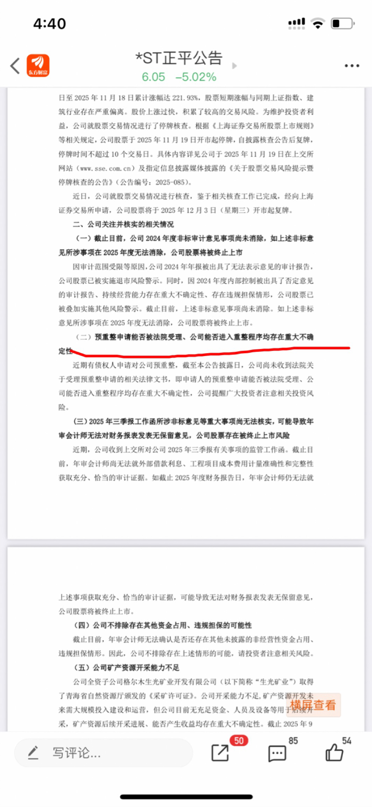 $*ST正平(SH603843)$ 出生公司从复牌到至今被债权人申请重整的公告都不发,别的公司都是公告发被重整,一个换审计公告2号压到7号,一个被债权人申请重整还是网友重整网上搜出来的,3号到如今到底做了什么?只会发一些没luan用的公告2.30个出来,涨一点就停牌25天,跌怎么不停牌了?
