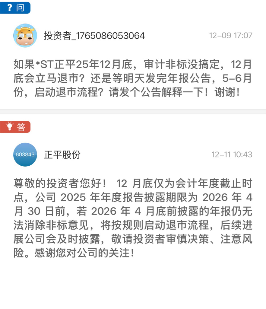 问的人也问得很细回复的人也回得很细就算退市程序,也是26年4月这个算是定心丸了吧