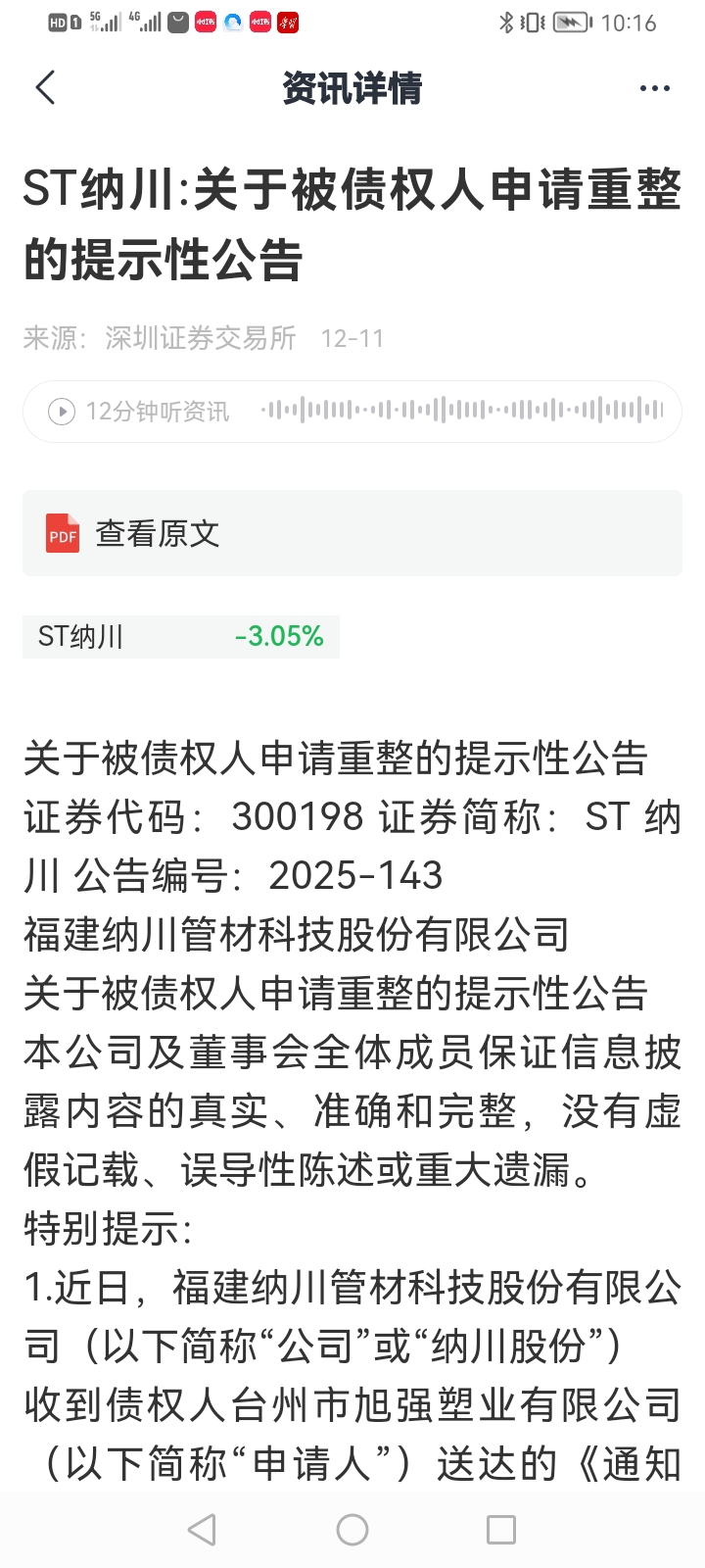 看人家纳川今天被申请重整,是发了正式公告了,你正平公司是人干的事吗?被申请重整这