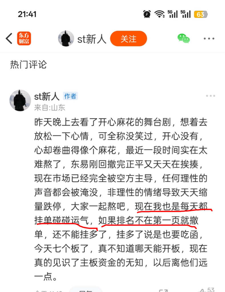 $*ST正平(SH603843)$ 不在第一页的都撤单吧,就像政委说的。大家晚上挂单碰运气,如果不在第一页就撤单吧。没必要挂单。。大V也在挂单卖,但是不在第一页就会撤单$*ST东易(SZ002713)$ $ST中迪(SZ000609)$
