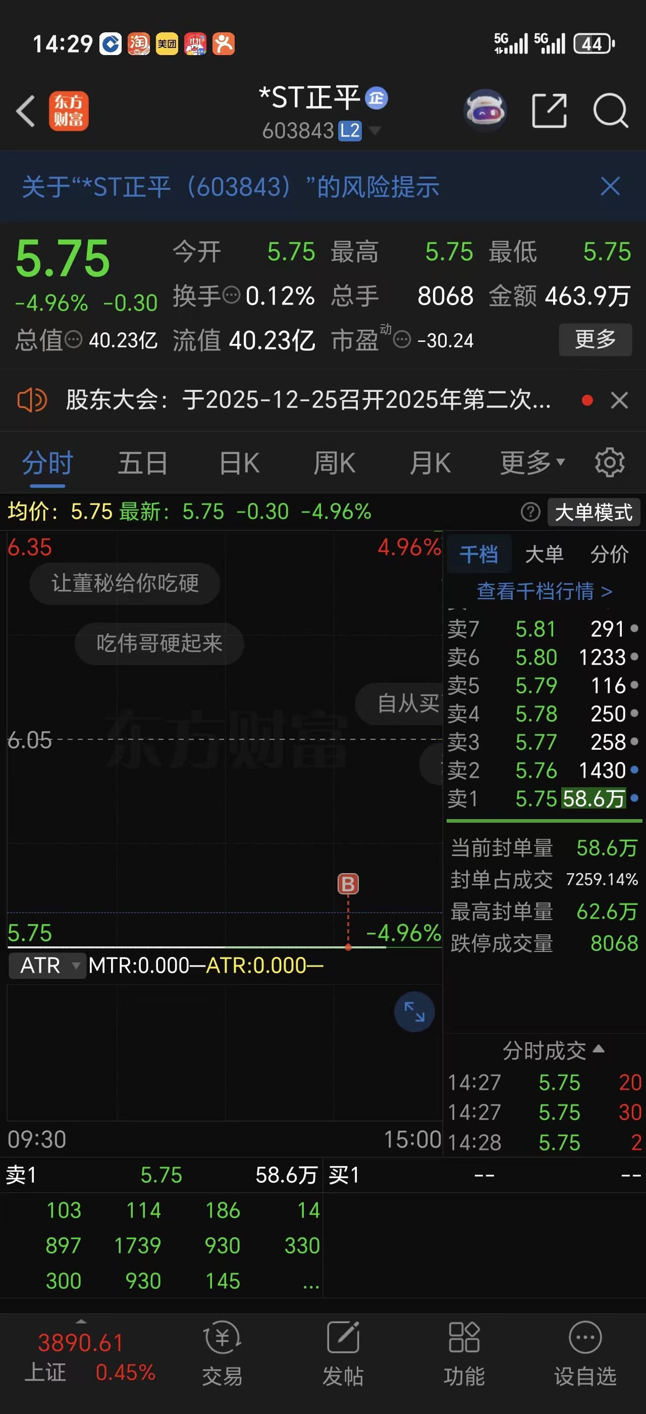 $*ST正平(SH603843)$ 风浪越大,鱼越贵。不要怕,就是干