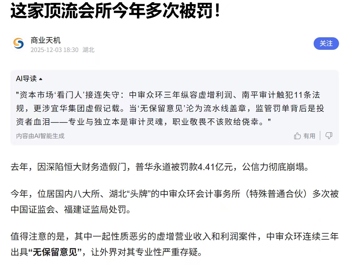 另外,中审众环今年多次被罚,体面退出也是情有可原#强势机会#