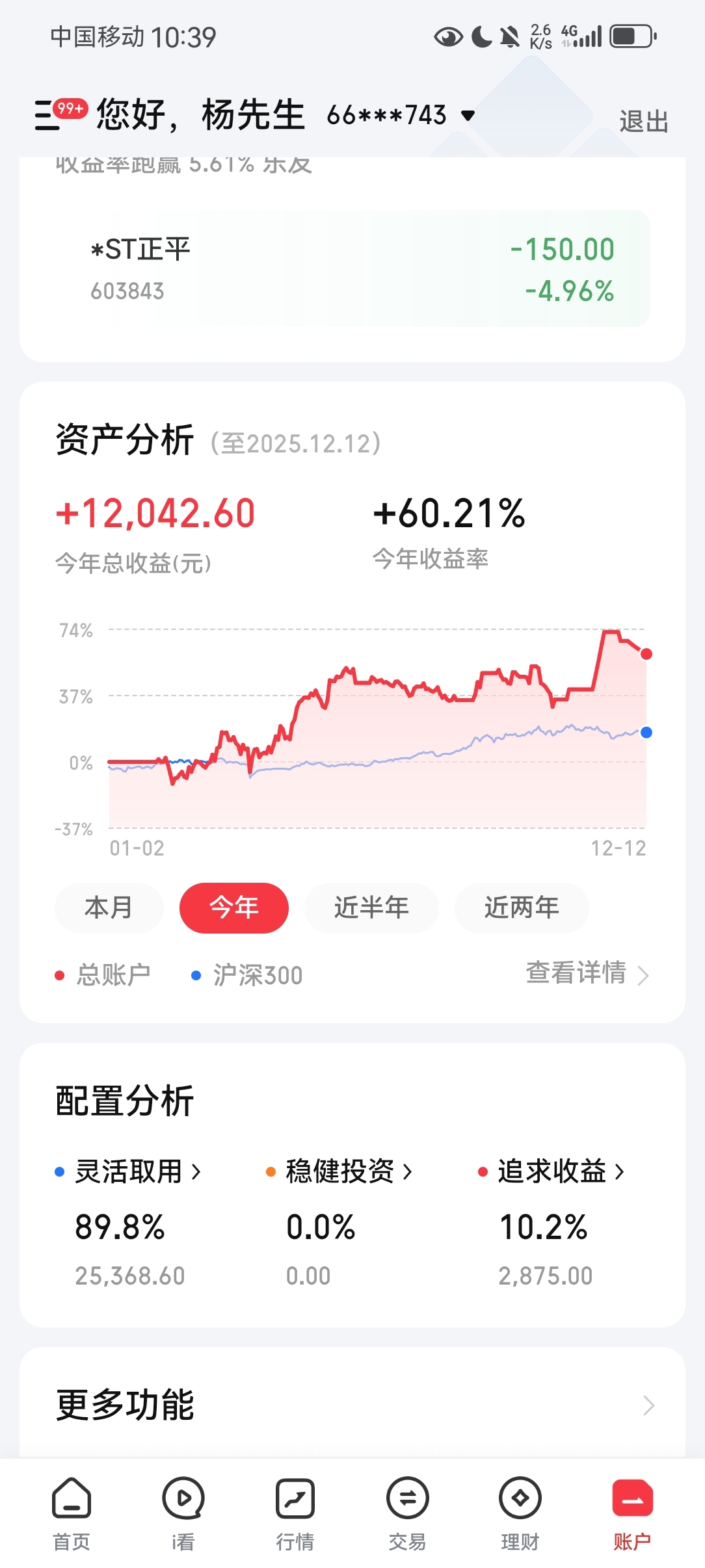 $*ST正平(SH603843)$ 跟大家分享一下我帮我闺女做的账户,我闺女今年2岁5个月本金是2万今年收入应该还算可以!就当帮他存嫁妆了!大家觉得怎么样!