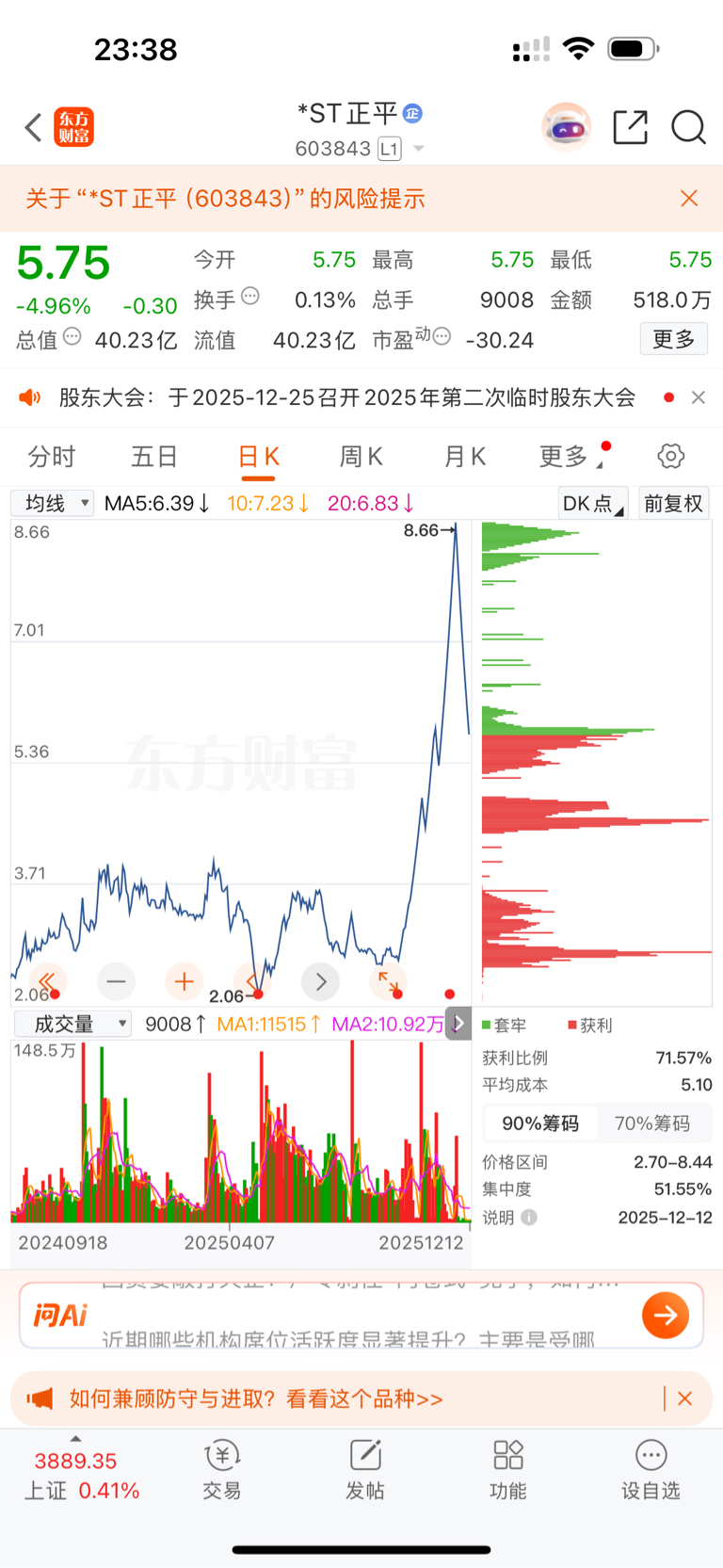 $*ST正平(SH603843)$ 还有70%盈利筹码,大部分人成本3块左右,