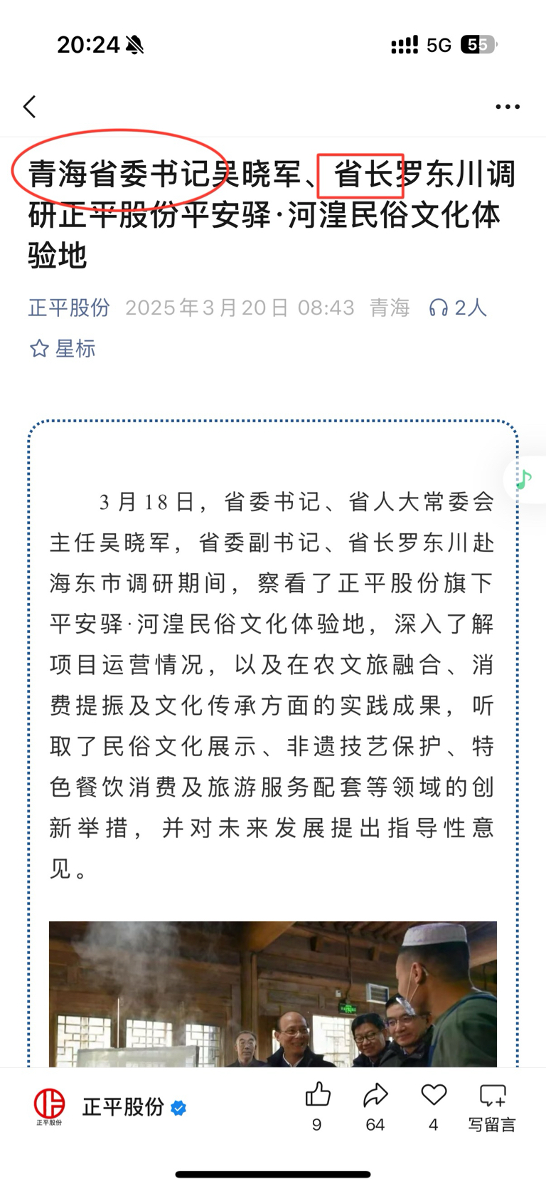 今年3月青海书记、省长到正平(图1)。今年6月副省长到正平(图2)。今年7月副省