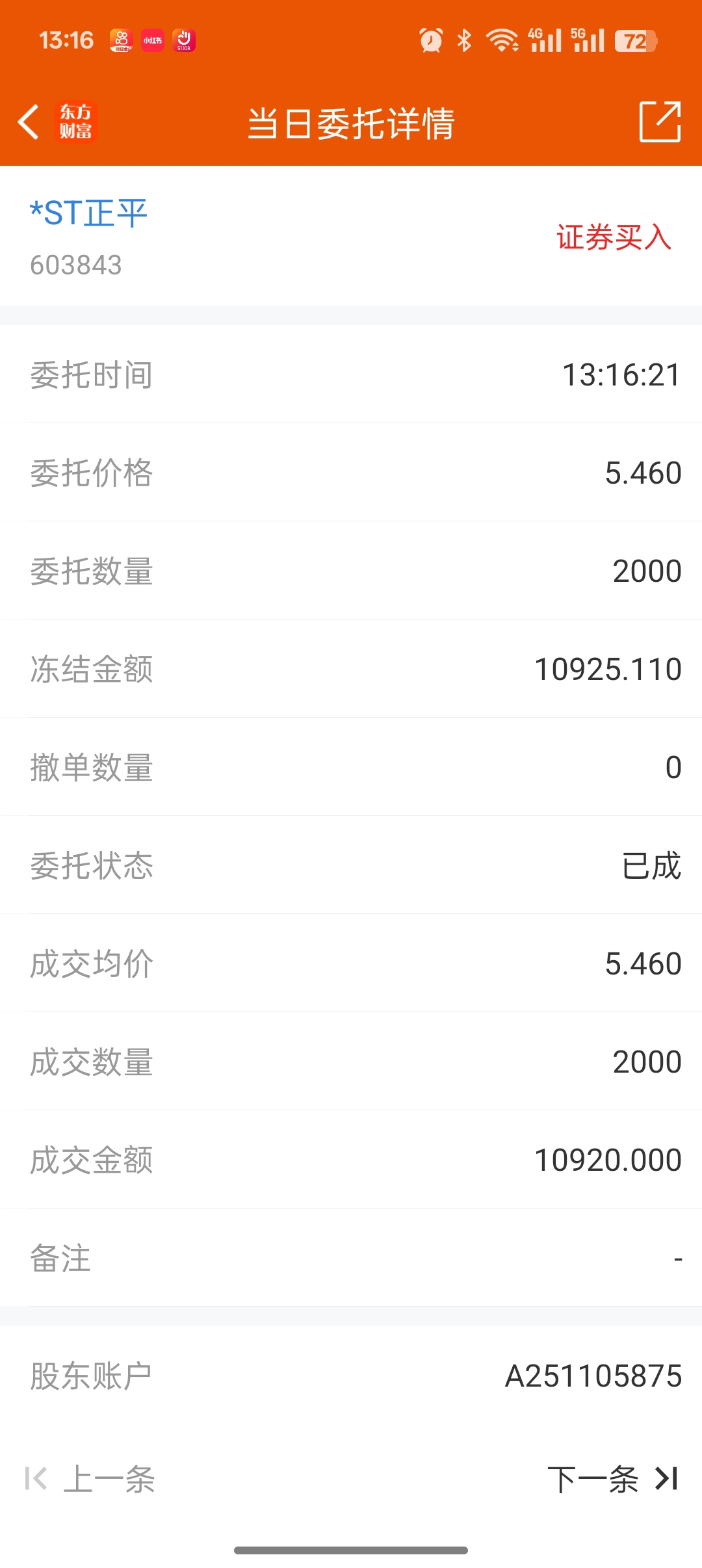 $*ST正平(SH603843)$ 最后一点资金,全部打完了,兄弟们,我尽力了。