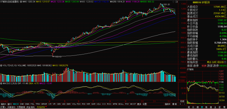 数据显示:当天A股股票涨跌比例是2314∶2968;涨跌幅超过10%的个股比例是53:11;涨跌幅大于5%的个股比例是139∶127。盘面看,结构性风险进一步升级,除了摩尔线程为首的短期爆炒次新股大跌外,另一个则是部分绩差问题股面临连续崩跌——*ST正平连续9个一字跌停,*ST返利连续8个跌停,*ST岩石、*ST亚振连续4个跌停,*ST建艺连续3个跌停,*ST奥维8个交易日7天触及跌停,创业板*ST立方再创上市以来的新低。