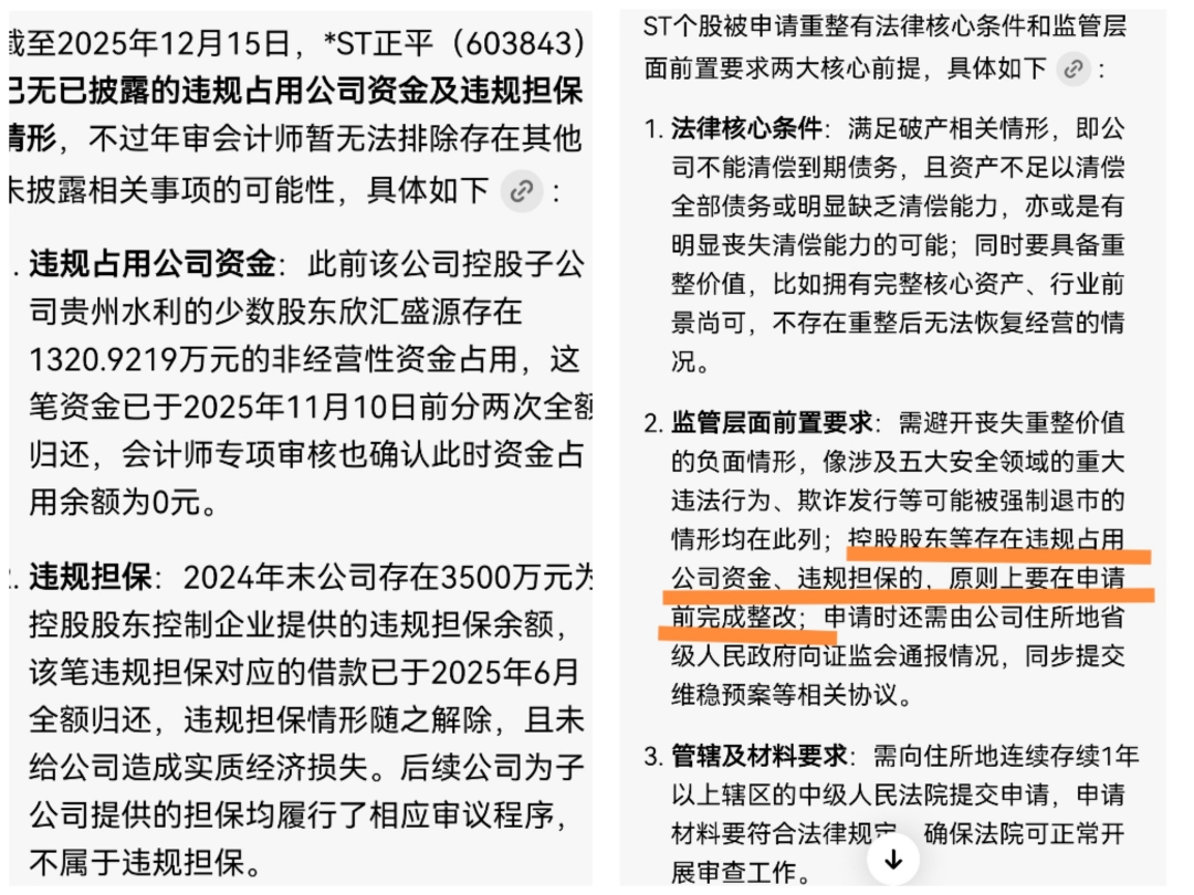 $*ST正平(SH603843)$ 之前解决违规担保 违规占用 就为了重整做准备