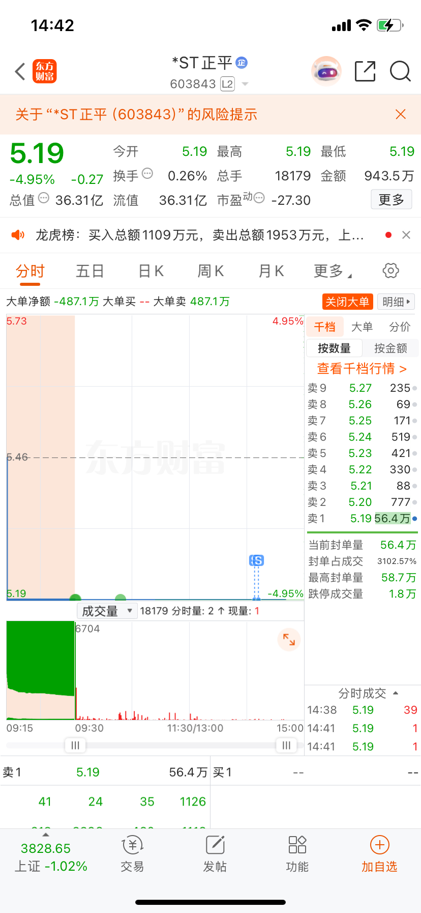 $*ST正平(SH603843)$ 终于出去了明天再也不用担心扣费了,祝留下的发财。