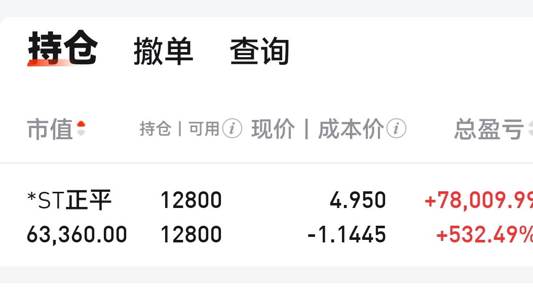 $*ST正平(SH603843)$ 不是吧,我下午看根本开不了,撤了你就开了