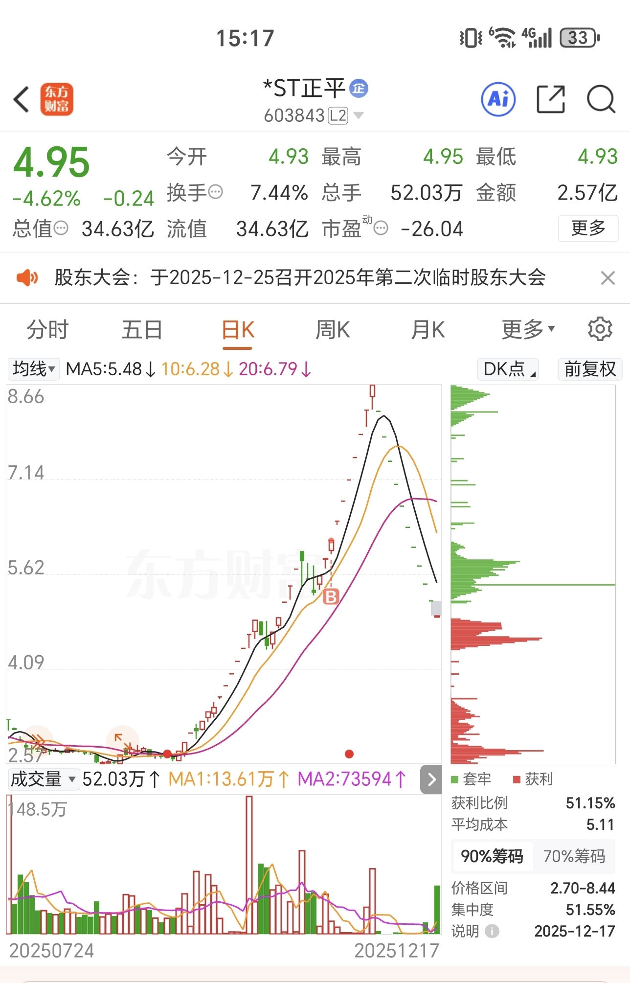 $*ST正平(SH603843)$ 正平明天买不到了。好在今天没排队卖。