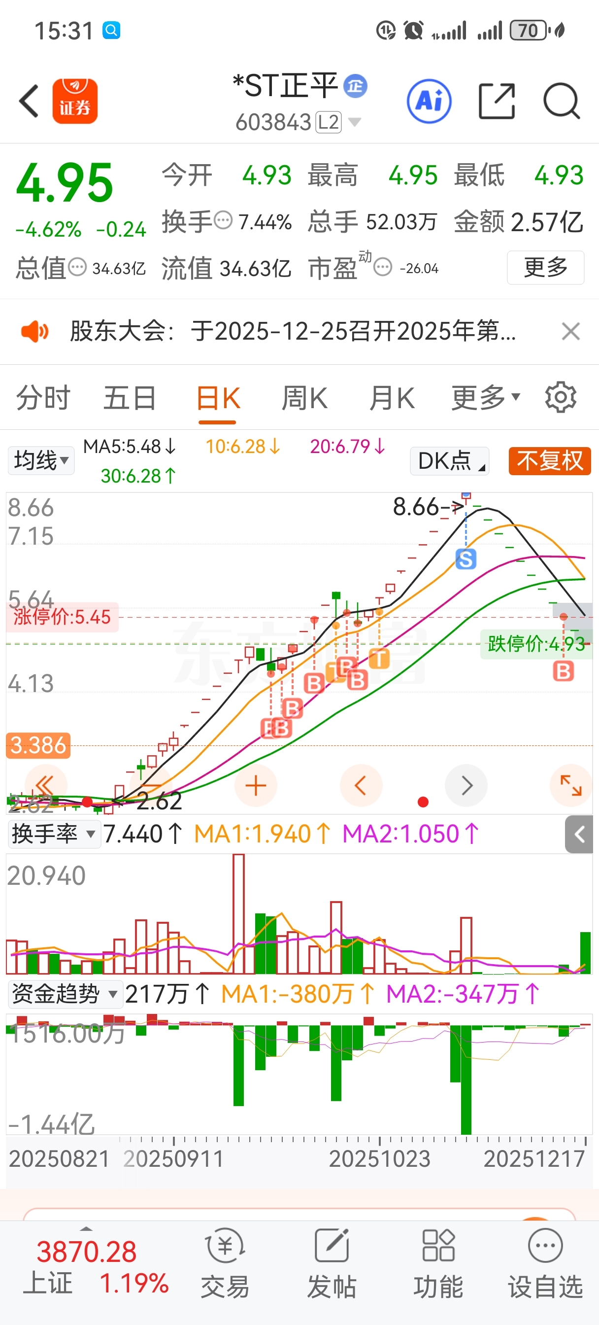 $*ST正平(SH603843)$ 有人说我马后炮,呵呵,有人啥都喜欢喷。今天挂跌停抢跑的人没有本尊