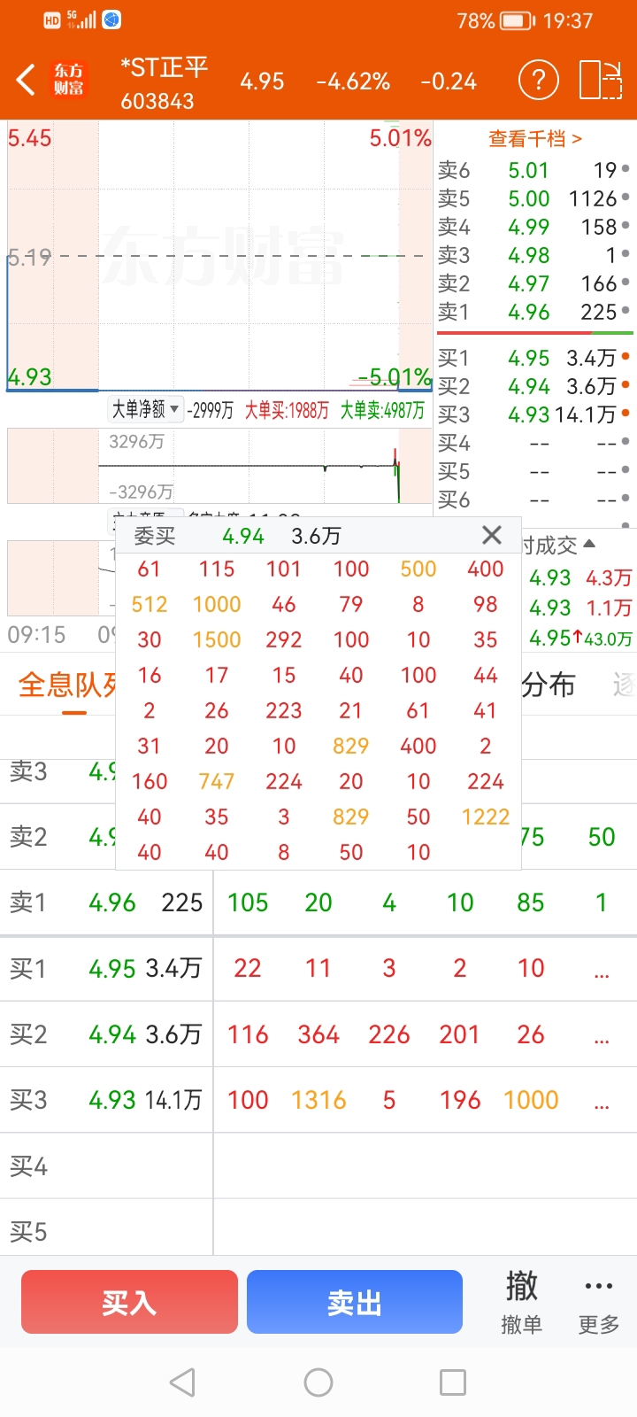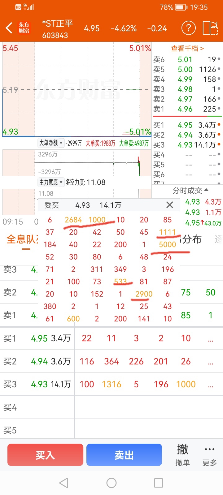 买1买2买3大单明细,这么多大单因为集合竞价挂低了都没买到,明天手速慢点都抢不到