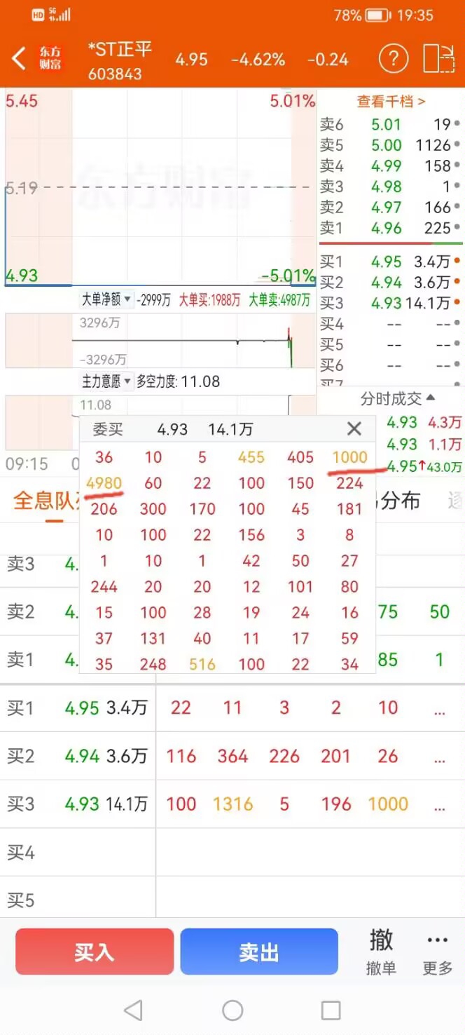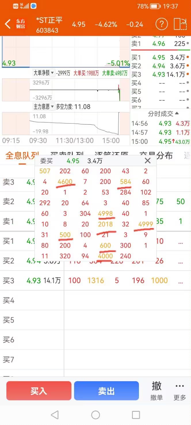 正平明天不高开三个点以上都是对这些大单的不尊重!做多资金明天会顶板抢筹!