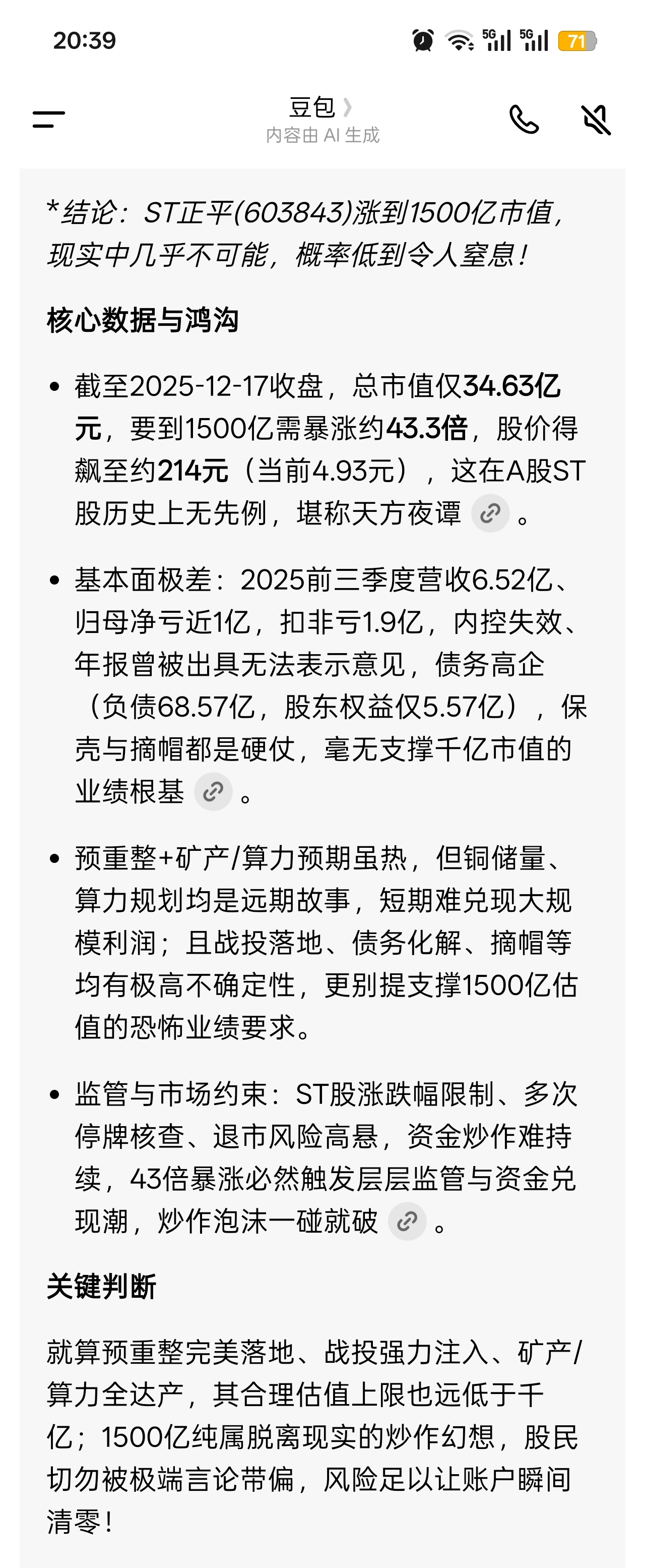 $*ST正平(SH603843)$ 根本不可能到1500亿市值,兰德里有瞎吹,能不能靠点谱啊。