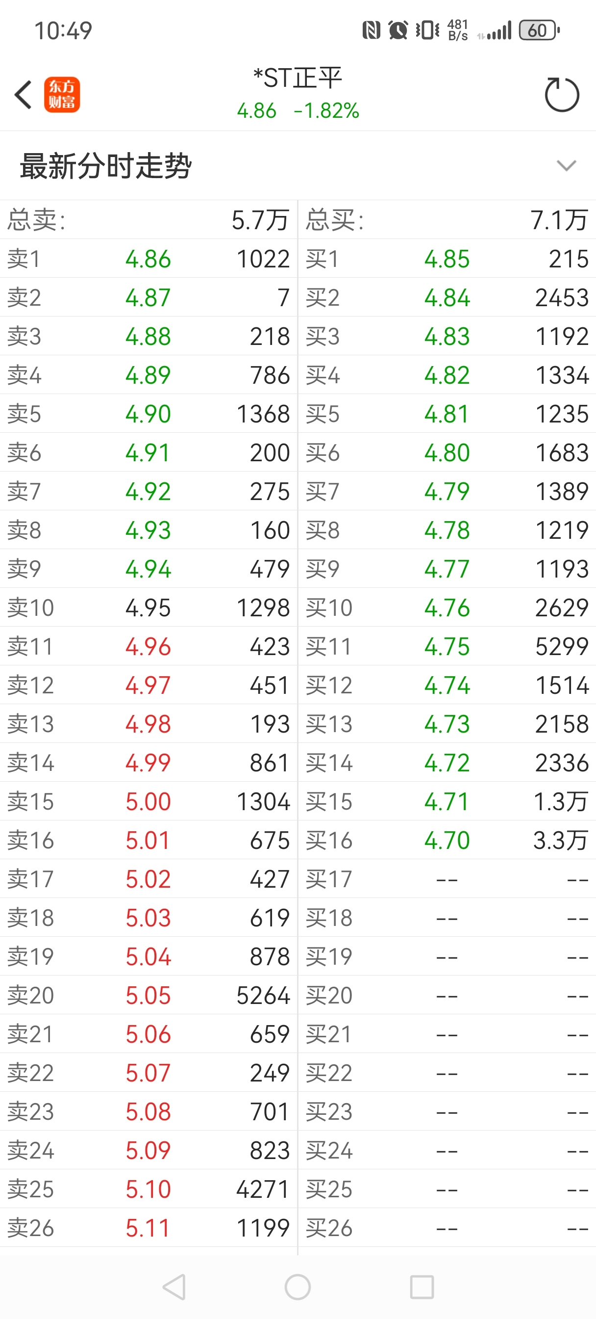 $*ST正平(SH603843)$ 单不多,随时拉涨停。但是不敢赌