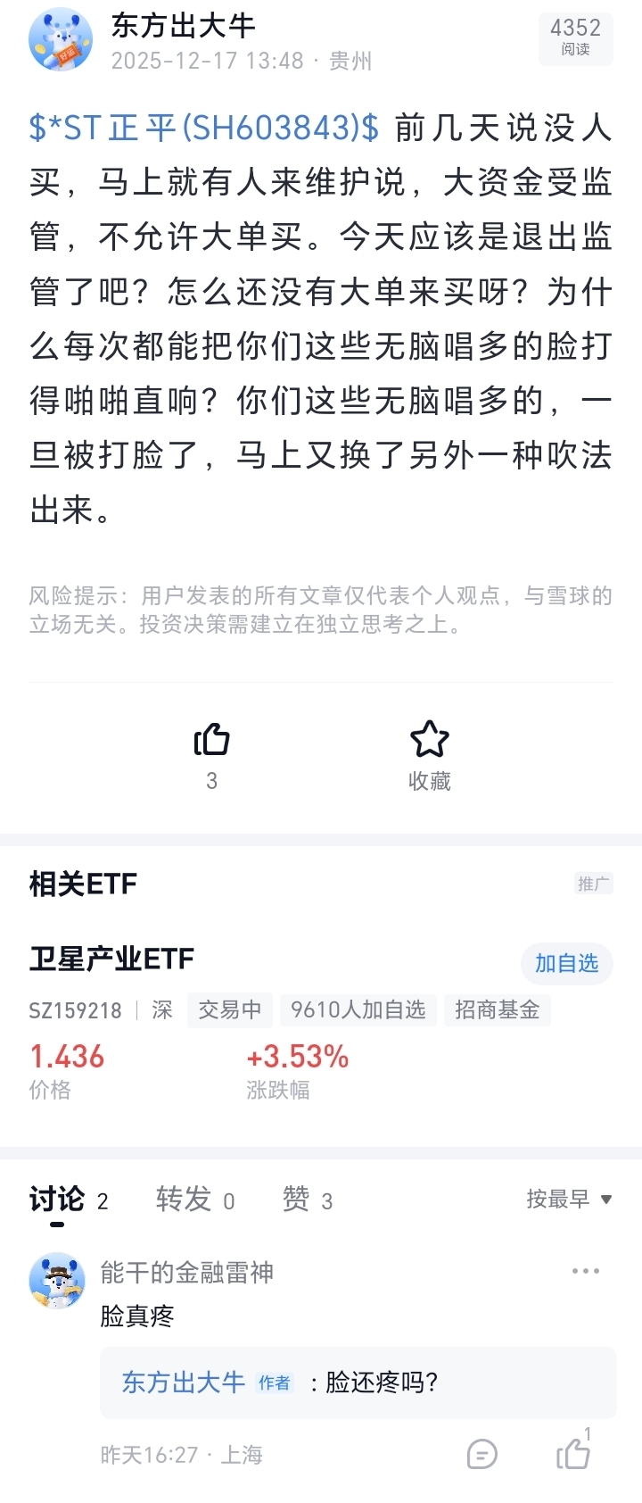 $*ST正平(SH603843)$ 不管你买什么票,最主要的就是能看得到趋势,能够分析得到利害相关。而不是就看当天的走势。发帖从来都是马前炮,包括我凌晨发的帖子来看,这脸打的响不响?