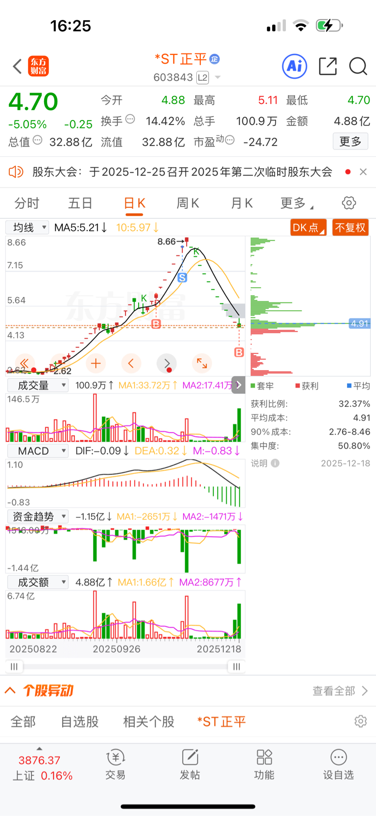 $*ST正平(SH603843)$ 8块多抢着进。4快多抢着跑。喝血喝血让你们骨瘦如柴。东易赔的要在这里赚回来 。哈哈哈。