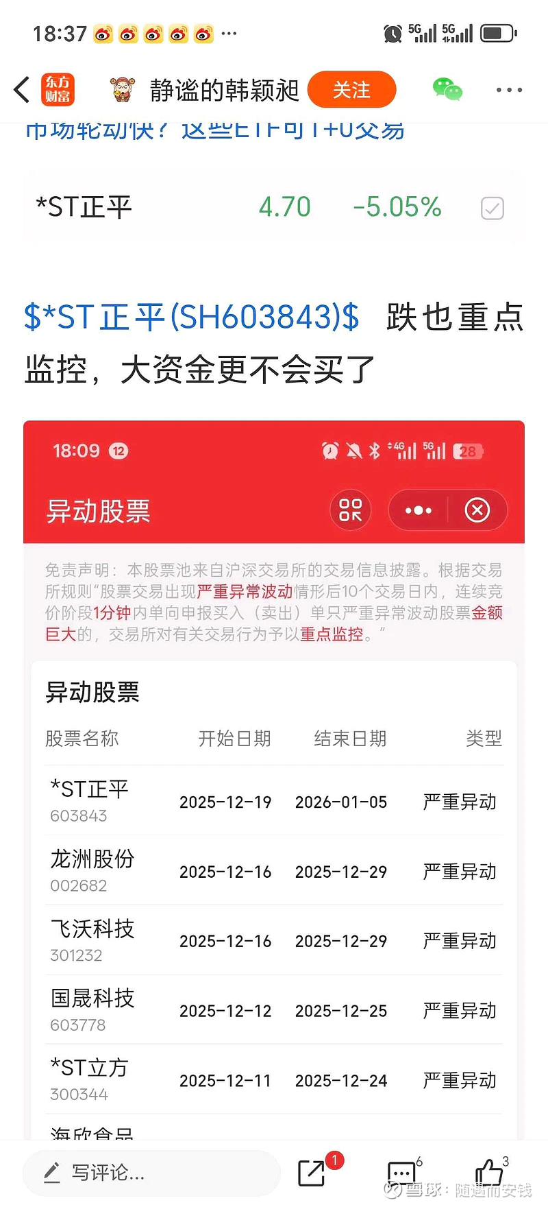 $*ST正平(SH603843)$ 完了,又要进监管了,
