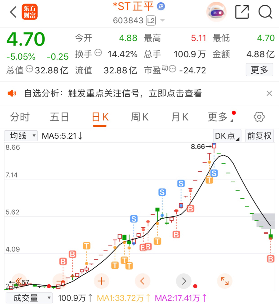 $*ST正平(SH603843)$ 这个时候还唱空的是不是吃了11个地板割肉的