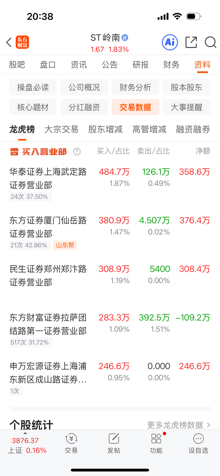 $*ST正平(SH603843)$ 上半年武定路抄底的ST岭南