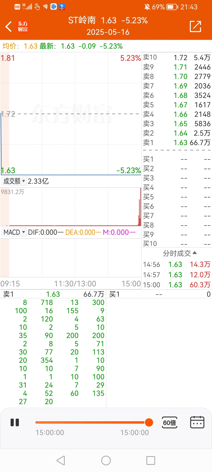 $*ST正平(SH603843)$ 是我被贪心蒙蔽了双眼,只看到了ST岭南尾盘集合竞价撬板后第二天高开秒板的例子,却没有看到花王尾盘集合竞价翘板次日仍然低开跌停的例子!要不然也不会吃正平这种亏!尾盘集合竞价撬板次日有可能低开跌停,也可能高开秒板,充满了不确定性!不要在股市中找规律!