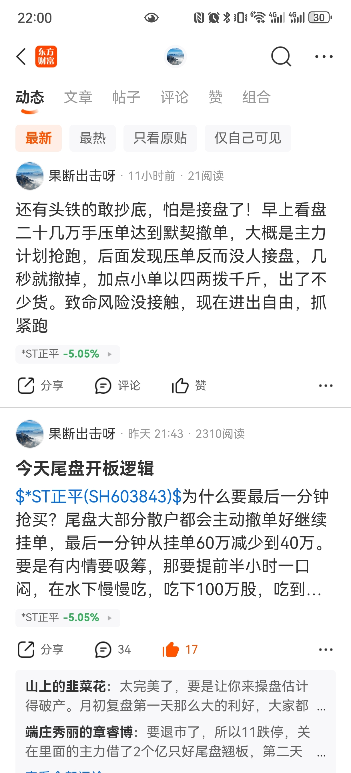 $*ST正平(SH603843)$ 浏览量还不错,不懂发挥多少作用。票基本盘就在这,唱多唱空都没多大作用。ST长药准退市股一两个板都能止跌,还涨回一些让人解套才往下,正平还没到准退市股的地步,恐慌情绪还更大。