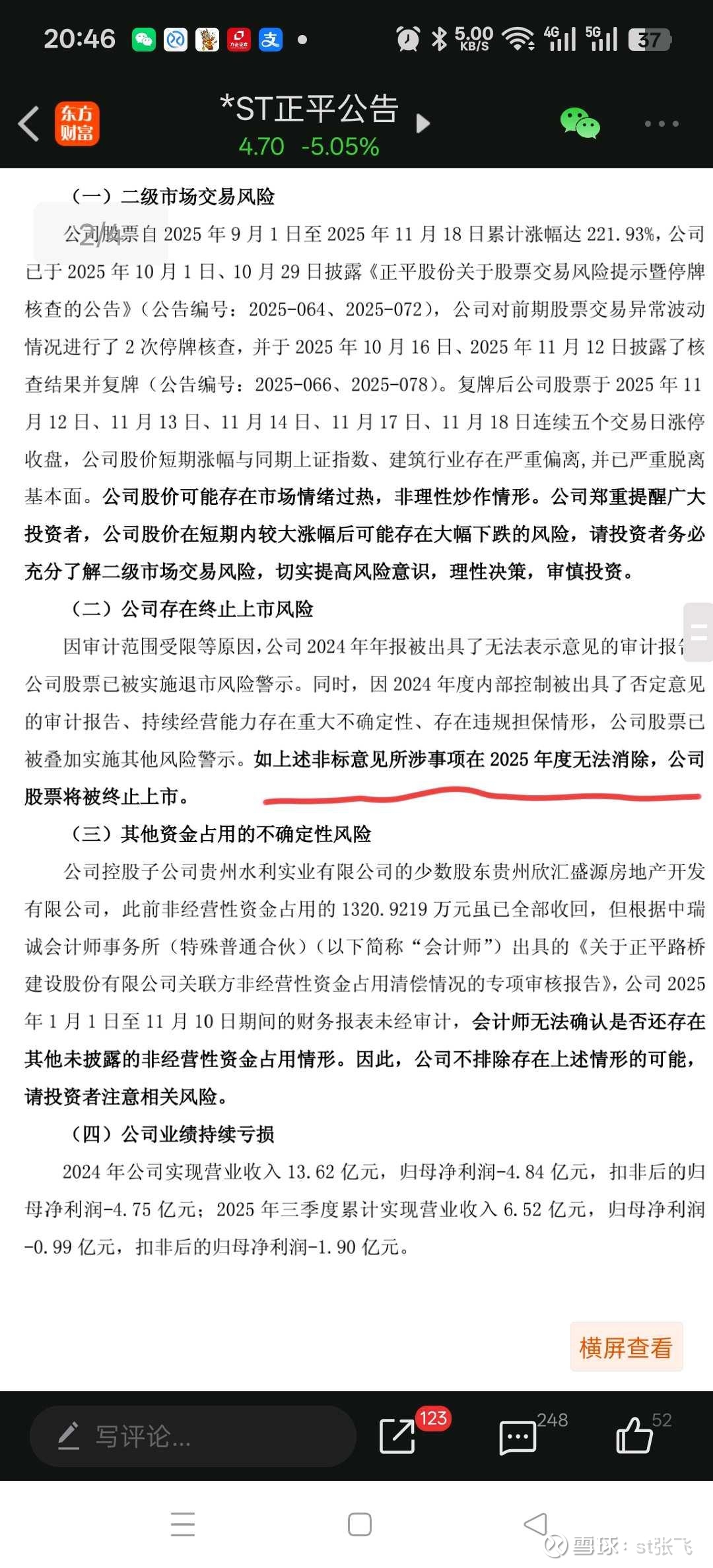 $*ST正平(SH603843)$ 正平风险还是很大的,怪不得三元买的大V都减仓或跑路。