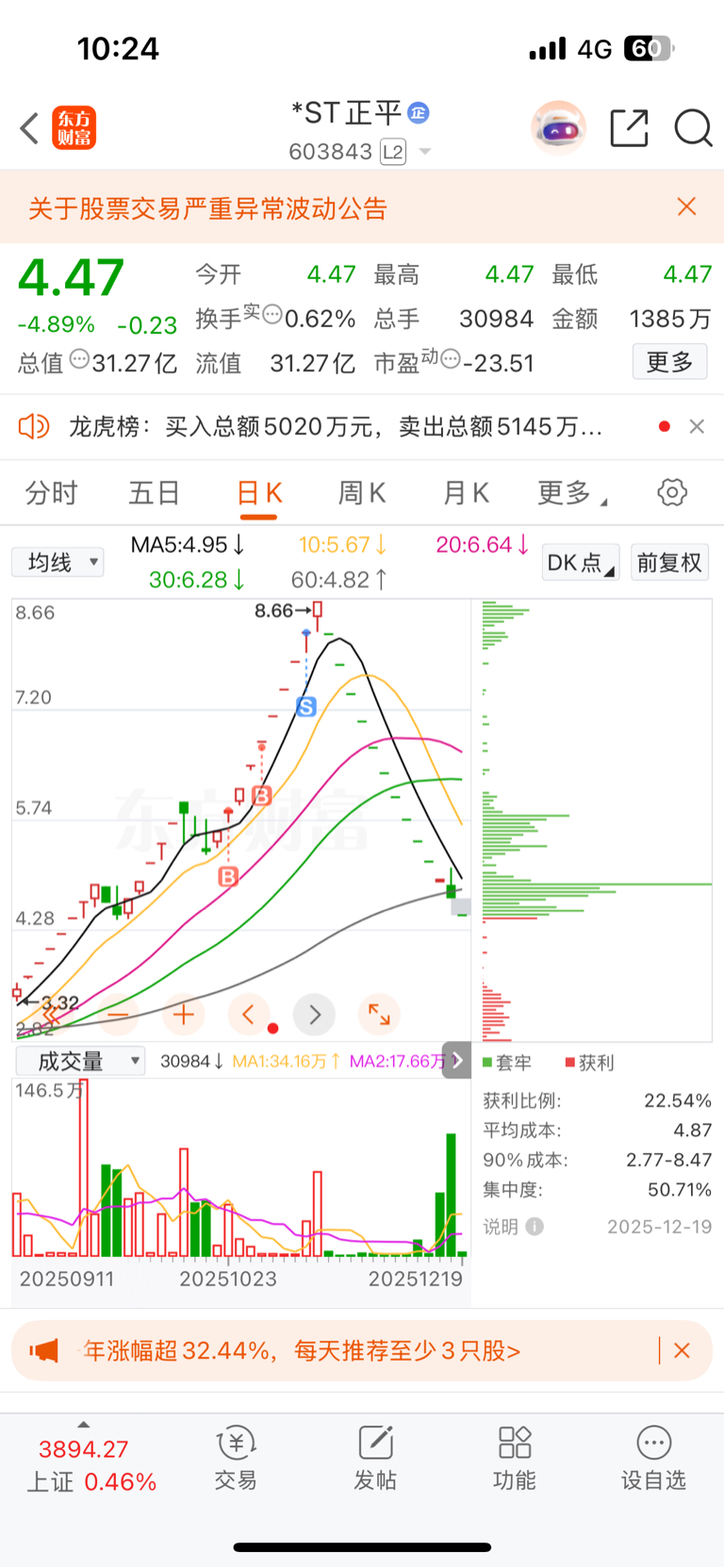 $*ST正平(SH603843)$ 真是天堂地狱一步之差,想想都后怕