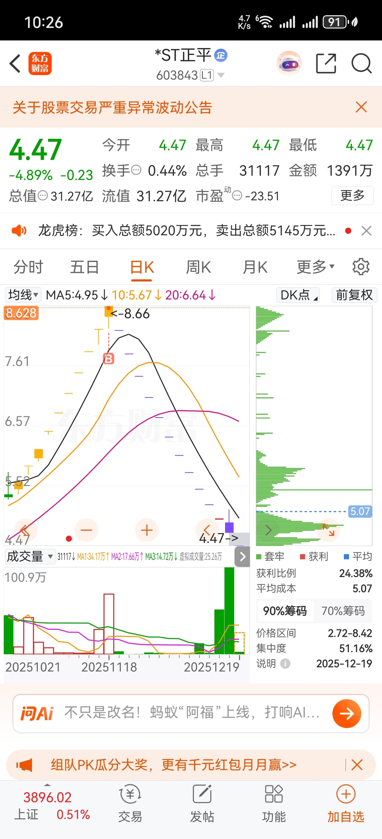 $*ST正平(SH603843)$ 已经亏了 50%,还有的救吗
