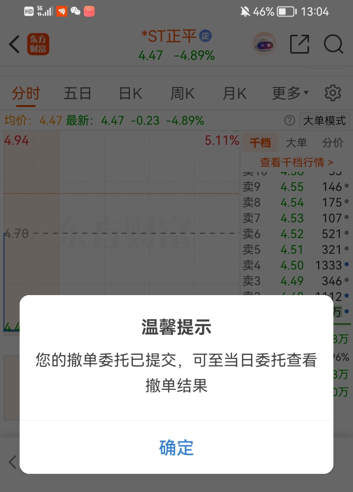 撤掉卖单反手加仓,满仓梭哈!不信正平会退市!