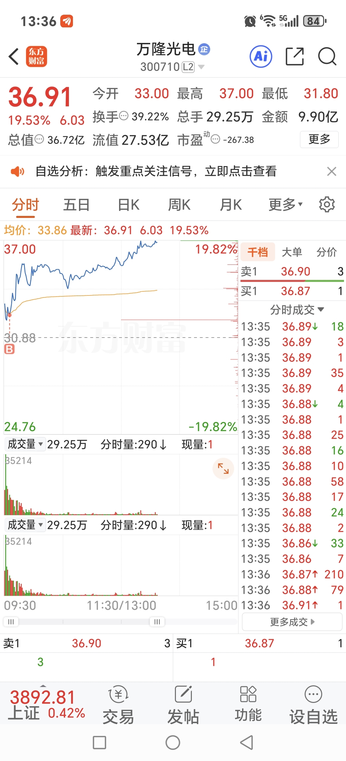 今天钱买其他股了,等我做完再来加仓