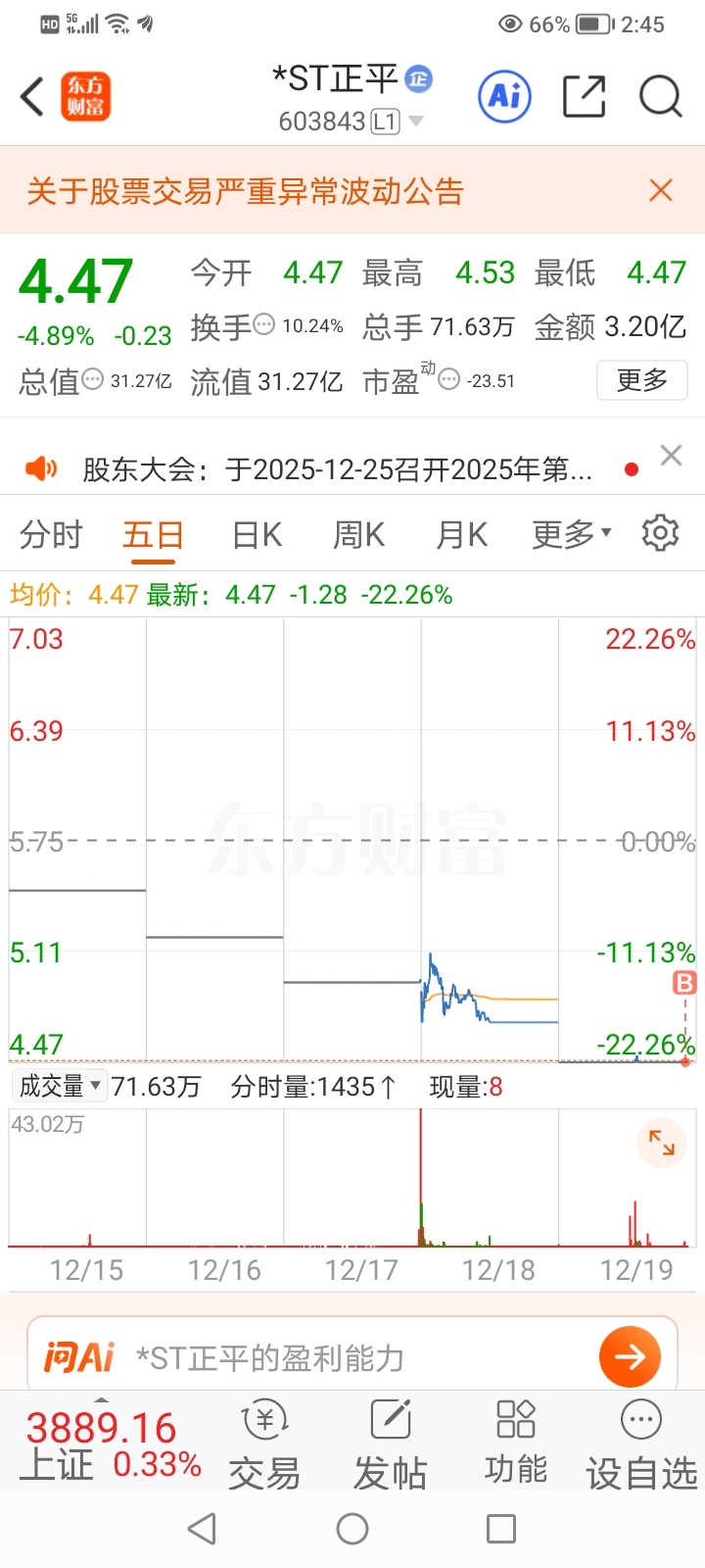 $*ST正平(SH603843)$ 不好了中计了。主力军大大的狡猾。