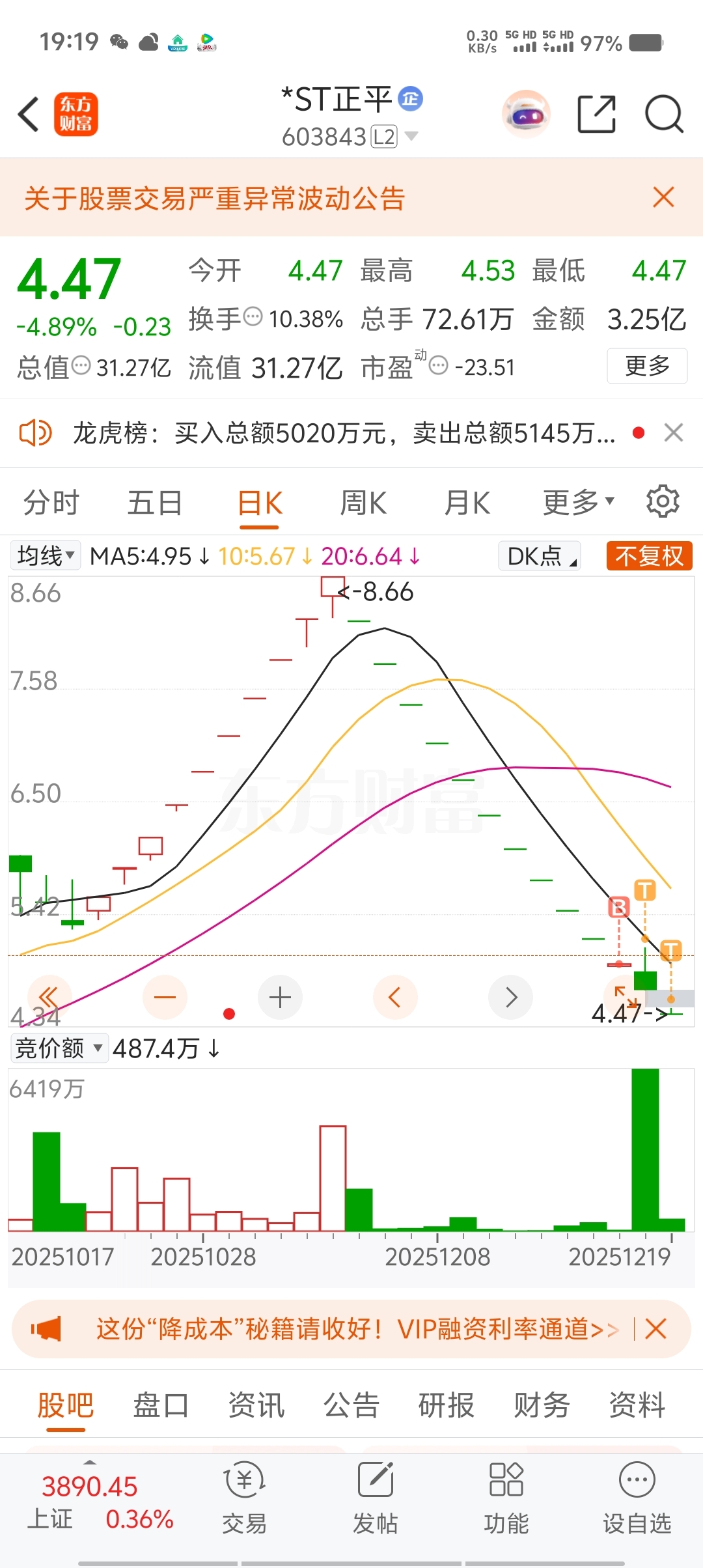 $*ST正平(SH603843)$一个点我也做套,套了200芝麻再小也是肉,怕退市的赶紧跑,给你们三天跑路的机会了,不跑就倾家汤产了
