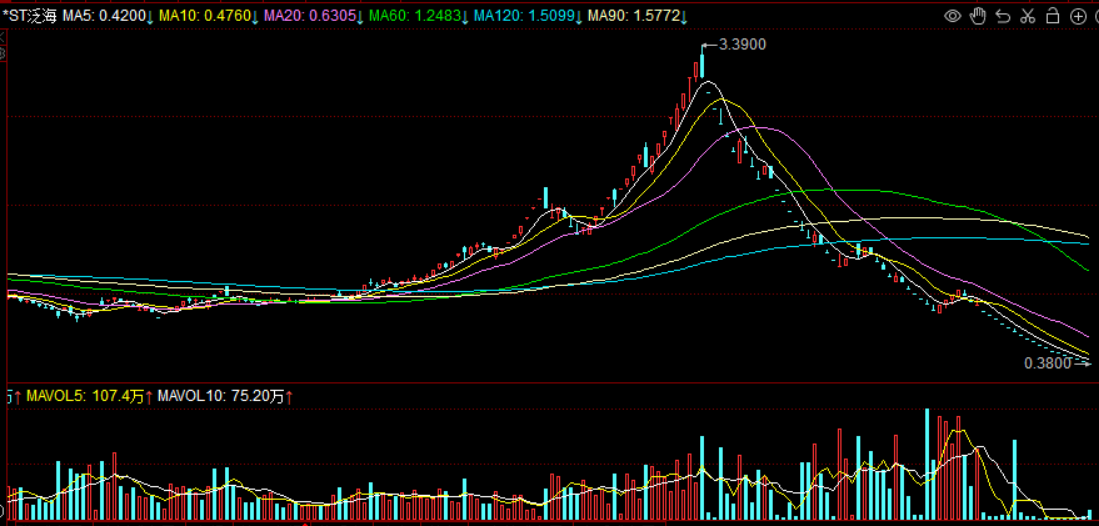 刚才翻了一下st泛海2023年的走势,从4月下旬最低的0.77元一路涨到9月下旬最高的3.39元,再一路跌到12月下旬的0.38元收场。8个月时间,一场梦