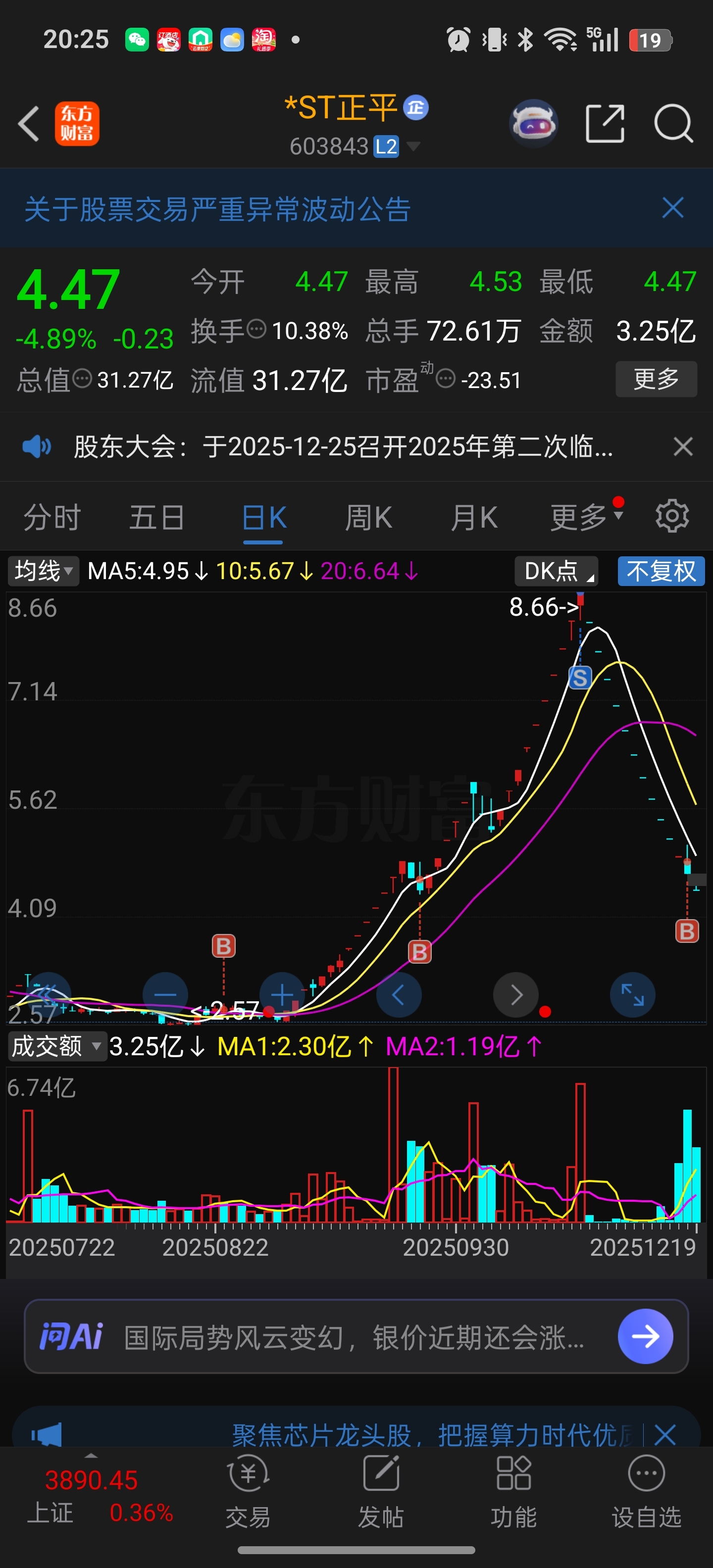 $*ST正平(SH603843)$ 平哥,你再跌点,我还没打满呢