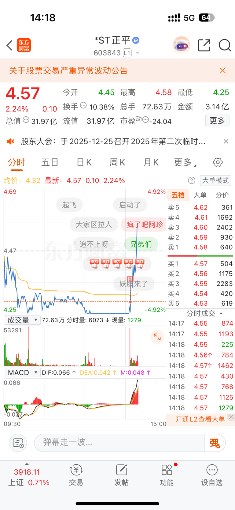 $*ST正平(SH603843)$ @幸运的小猫咪 猫咪我来啦