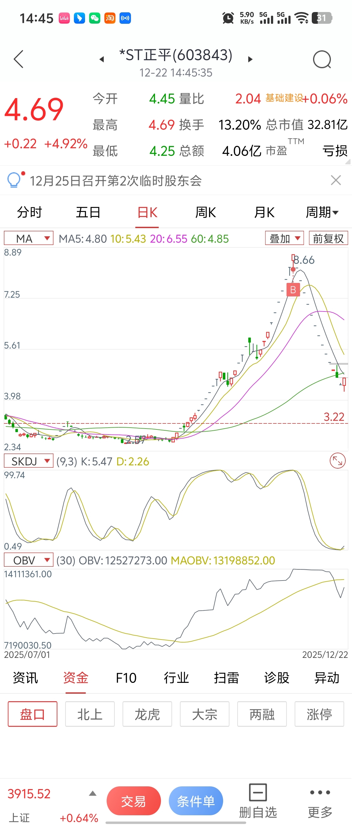 $*ST正平(SH603843)$ $*ST东易(SZ002713)$ 一个是山顶加仓一把赔光,一个是抄底不成反被抄家