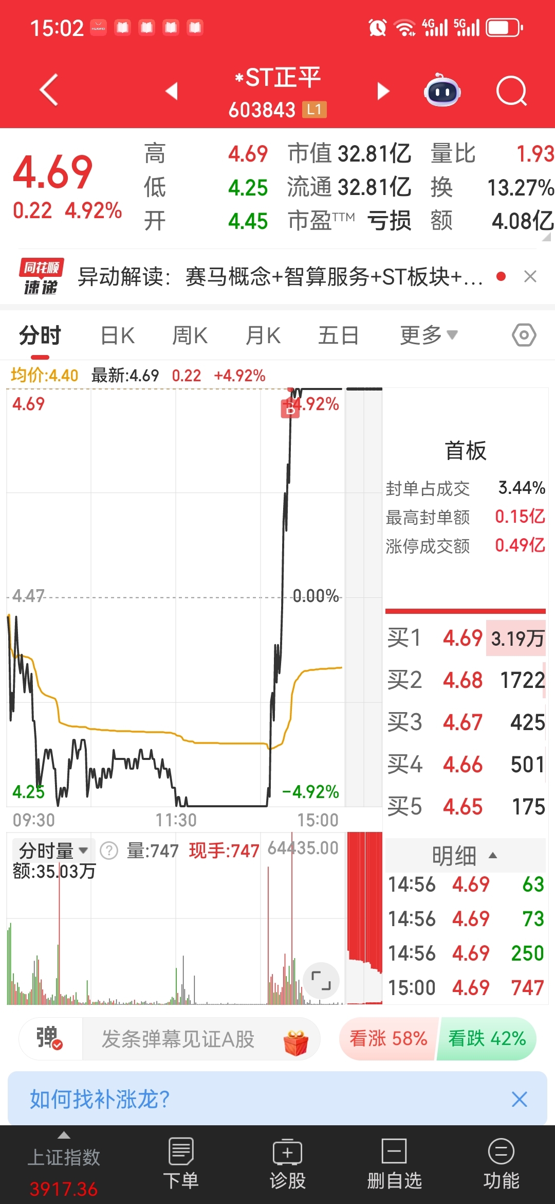 $*ST正平(SH603843)$ 今天打板进,明天给我一小块肉,把我前天割肉的补回来