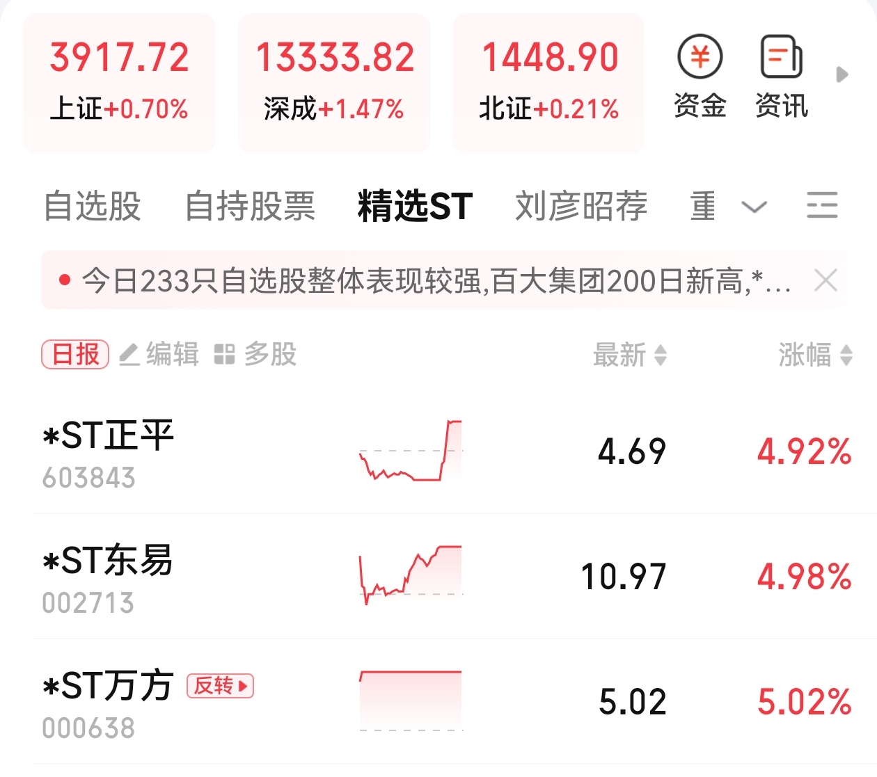 $*ST正平(SH603843)$ $*ST东易(SZ002713)$ $*ST万方(SZ000638)$ 今天三个涨停收得忐忑不安,满满的妖股气质,最痛快的就是正平了,被压诈了14个跌停,腰斩后终于冲破了黎明前的黑暗,很多S多头都没能抗住,主力手上的筹码也满满的了!整个ST板块的情绪又回来了!