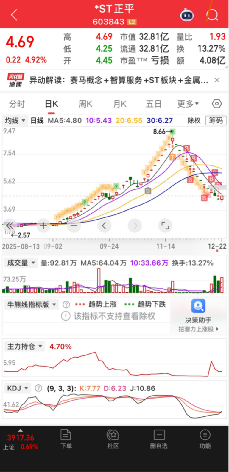 $*ST正平(SH603843)$ 字典里没有做t降成本.只有补仓降成本.